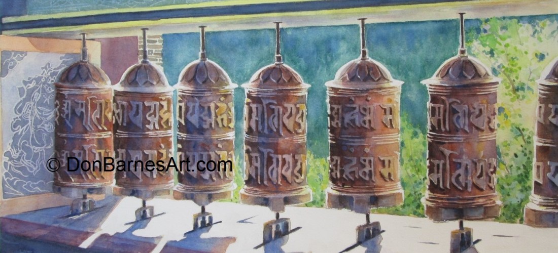 I think that the field sketches done while I am traveling are a big part of what I do and so I recently created a new gallery on my web site called “Travel Sketches” under the Painting Galleries section. Not all of these sketches were created on location in some distant land but were recreated in the studio in this “lighter style”. I have included a few examples from a trip to Nepal where my wife and I were hiking the Annapurna Circuit. The picture at the top of this post is an example of one my studio paintings.