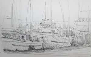 Pen sketch of fishing boats