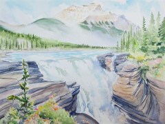 Athabasca Falls, Jasper National Park, Alberta, Watercolour on paper. Sold