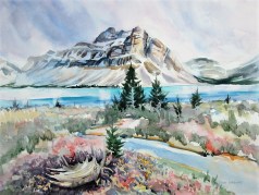 Bow Lake, Banff National Park, Watercolour on paper. Available for sale.