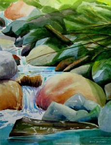 Mountain Stream Study #2, Watercolour on paper, Sold