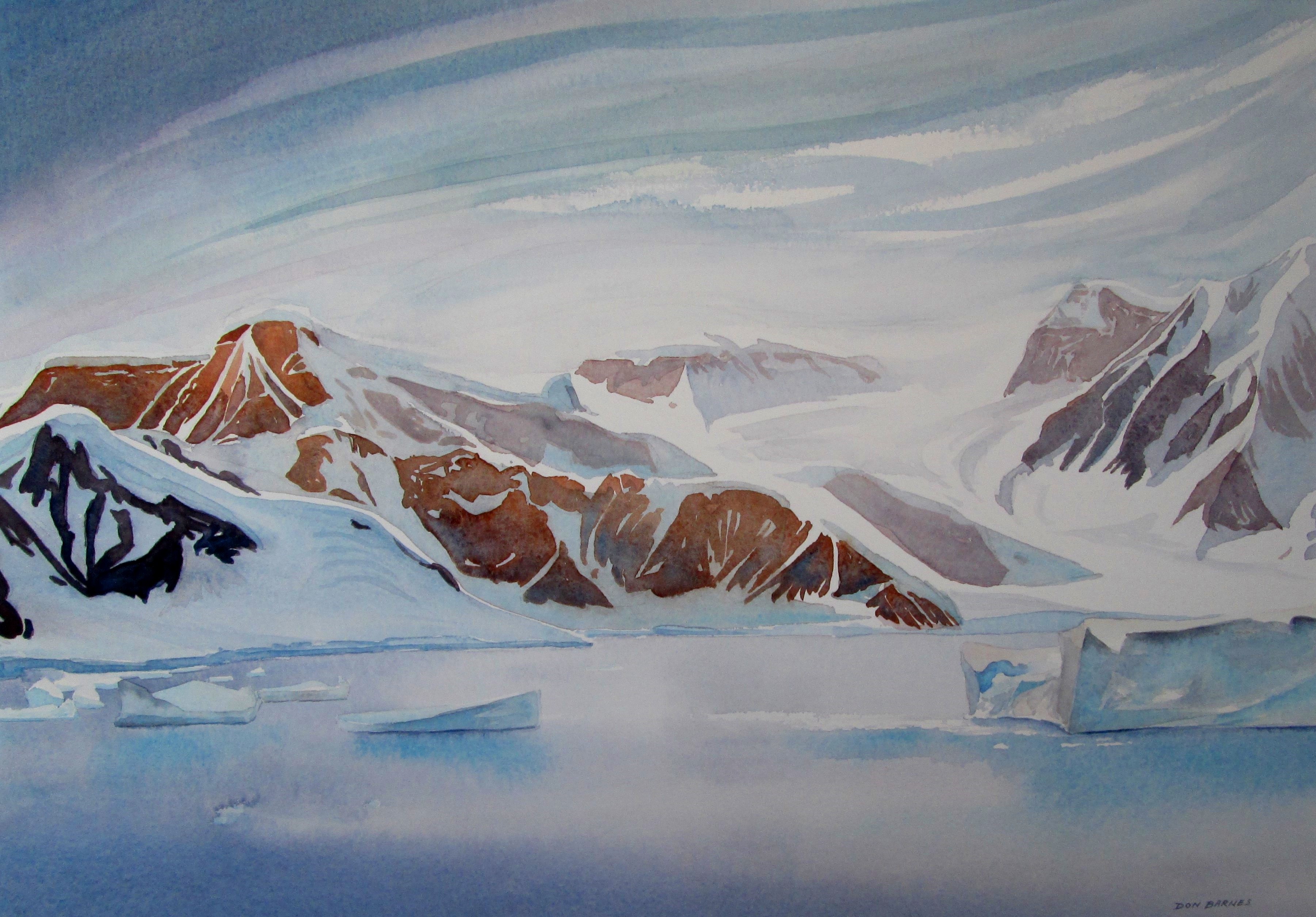 Summer in Gerlache Strait, Antarctica, Watercolour on paper, Sold